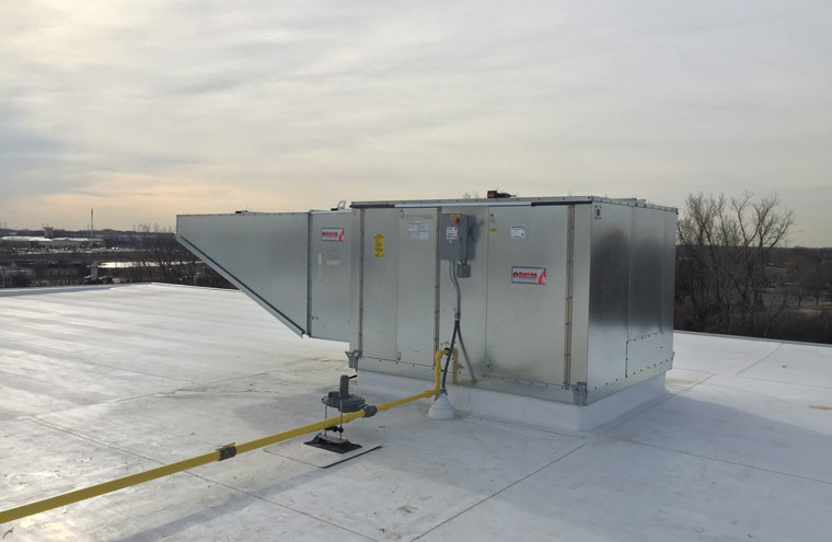 Design: Large, open field spaces can lead to significant winter stratification and cold playing conditions. Summer weather results in stuffy and uncomfortably warm conditions. Direct fired heating was installed to heat and ventilate the space during the winter. HVLS fans doubled to destratify during the winter and provide air movement and a cooling breeze in the summer. Gravity vents allowed for pressure relief as needed.
